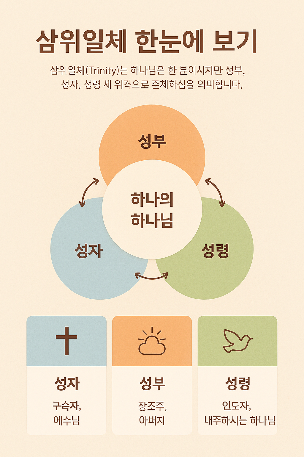 삼위일체는 기독교, 특히 개신교 신앙의 핵심입니다. 성경에 기반한 이 교리를 정확히 이해하면, 우리가 믿는 하나님이 어떤 분인지 더 깊이 알 수 있어요. 오늘은 삼위일체 교리를 쉽게, 성경적으로, 그리고 일상 언어로 풀어보려 합니다.