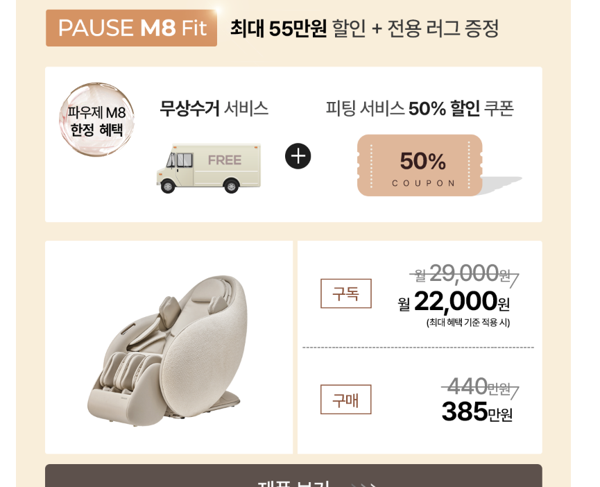 - 다양한 프로그램(근육이완, 척추 교정 등) 내장