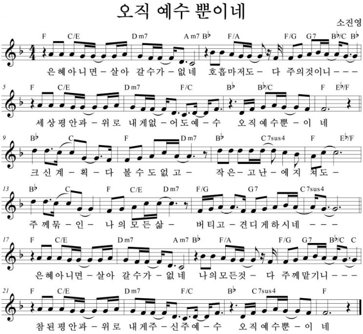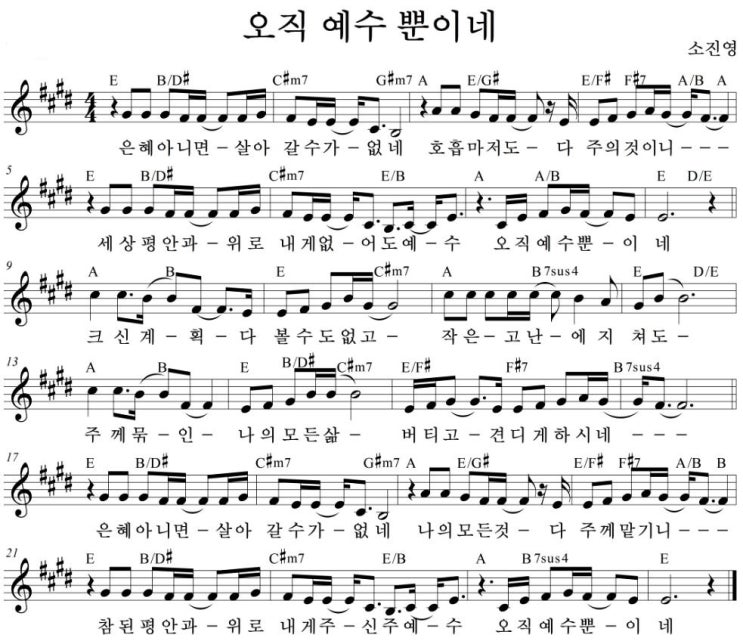 은혜아니면살아갈수가없네(오직예수뿐이네) D, E, F 악보 & 와이드 PPT까지!