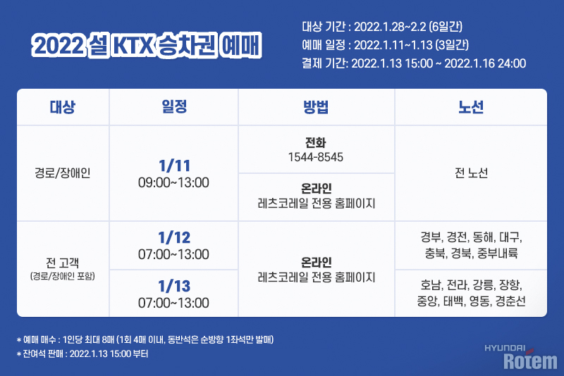 - KTX는 연휴 기간 예매 오픈일이 따로 공지됩니다.