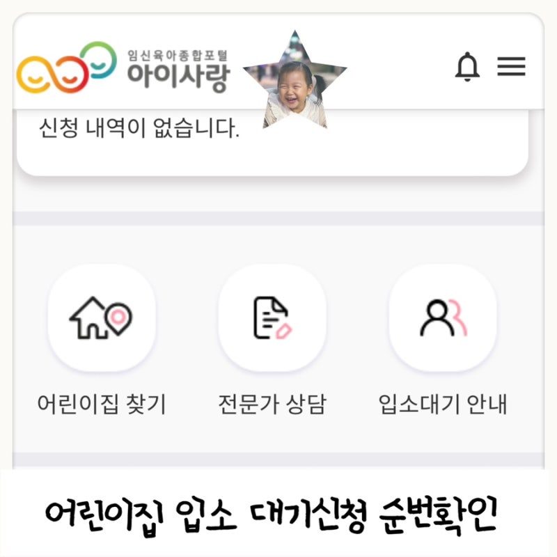 - 아이사랑 앱 메인 > “대기현황 조회” 메뉴