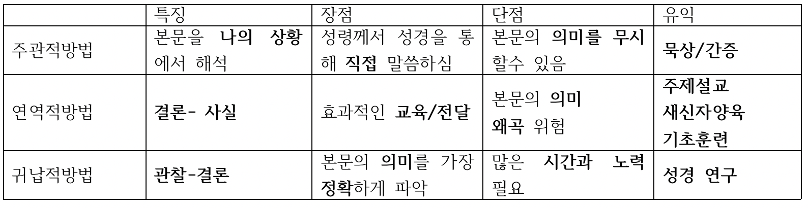 그런 의미에서 귀납적 성경연구가 많은 오류를 줄여줄수 있는 대안이 될수 있다.