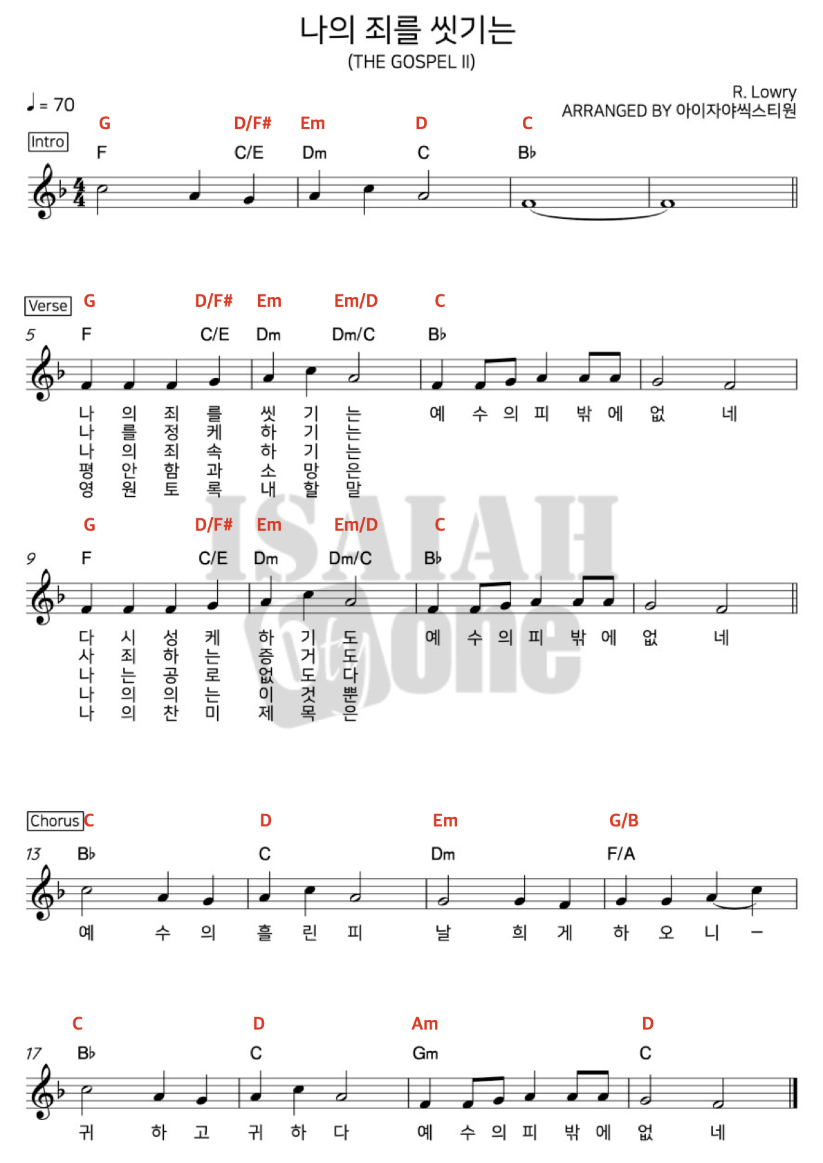 나의죄를 씻기는 -찬송가 255장 (아이자야 식스티원 ver F,G)