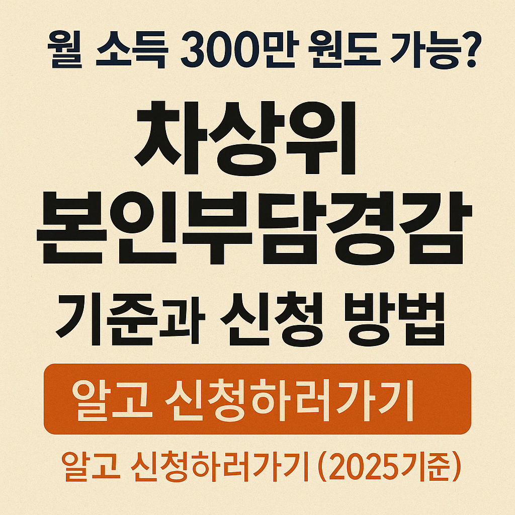 2025년 기준 차상위 본인부담경감 대상자 선정기준부터 신청방법까지 한눈에 정리했습니다. 월 소득 300만원도 가능할지, 실제 기준을 확인해보세요!